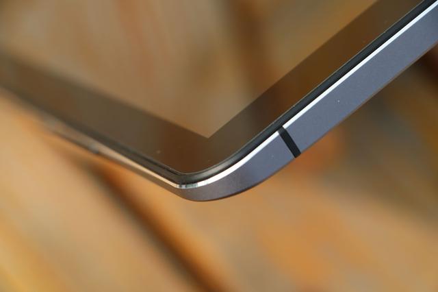 为了保证整体的美观和实用,酷比魔方Freer X9在长边与中框的转角处采用了CNC切边和曲线过度,使得整机的握持感更加的贴切,同时也使得整机更加的美观时尚。两道CNC切边一道金属原色,一道机身原色,明暗搭配使得二者形成了鲜明对比。对于男士而言整体握持恰到好处,不过对于女生而言8.9英寸想单手握持确实有些难度。