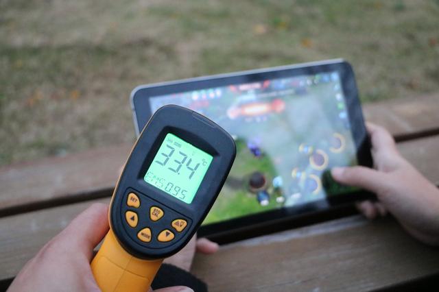 散热对于平板而言同样也至关重要,人只要脑子一热就犯迷糊,更何况是平板了。如果平板脑子一热那绝对就是卡、卡、卡的节奏,为了使得实测数据更加的真实,我特意在游戏半个小时之后才进行屏幕温度实测,在王者荣耀游戏的同时实测处理器表面屏幕温度为33.4℃,总体而言还算不错,如果是炎热的夏季估计温度会更高一些。